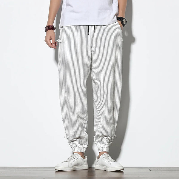 RELAXED COTTON-LINEN STRIPED HAREM PANTS